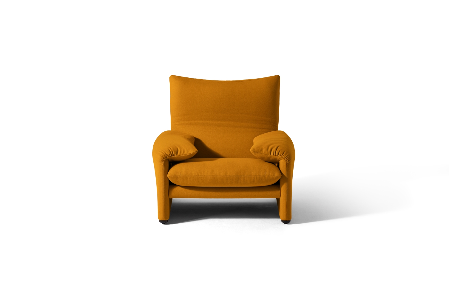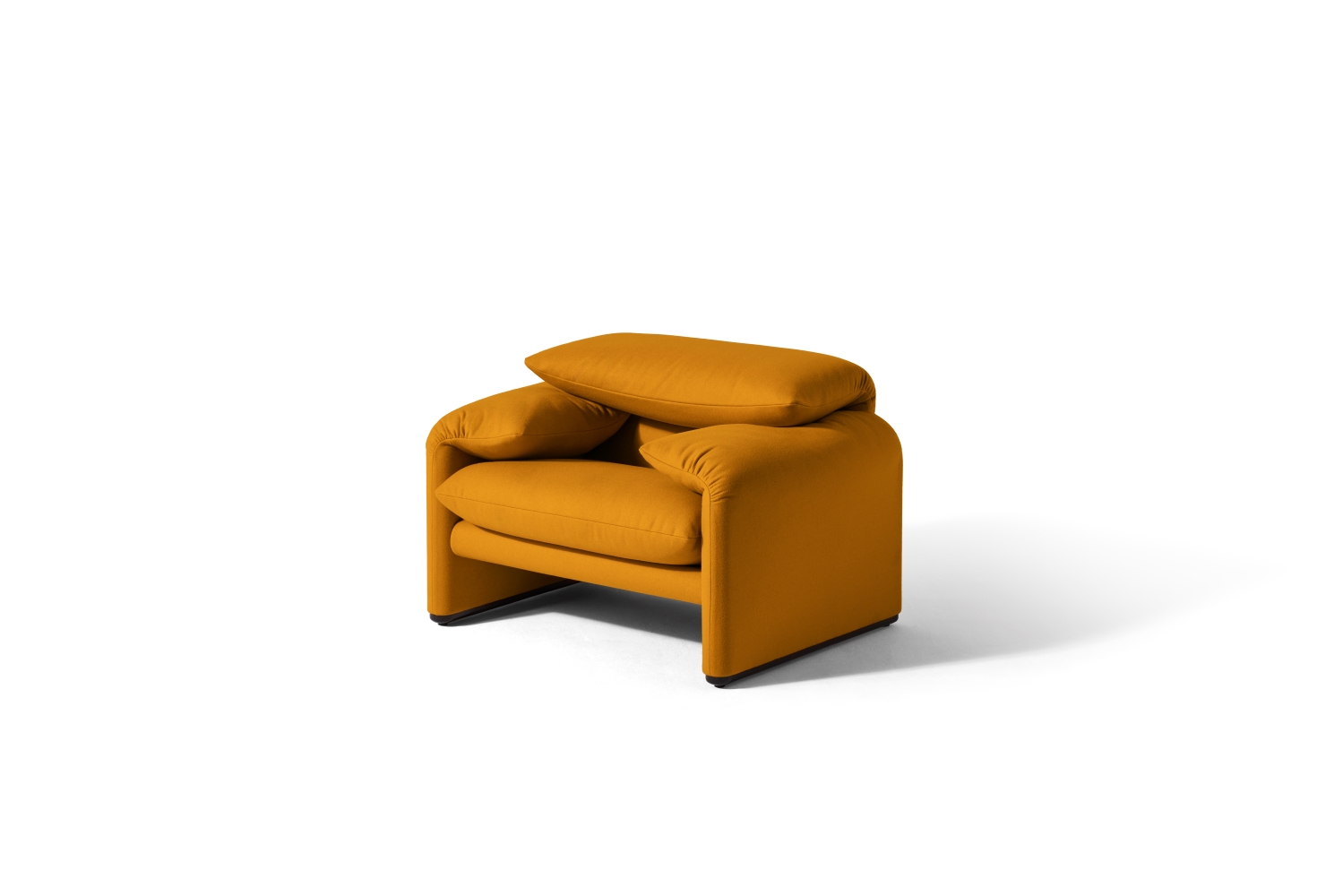 The unpretentious innovation of the adjustable headrest and the reassuring appearance and simplicity of the soft padding sum up the singularity of this design by Vico Magistretti.