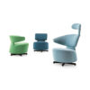 The unpretentious innovation of the adjustable headrest and the reassuring appearance and simplicity of the soft padding sum up the singularity of this design by Vico Magistretti.