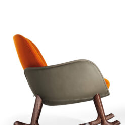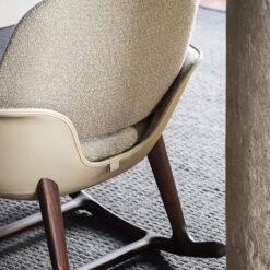 A shell, almost a petal that houses and protects without closing itself off. The Martha armchair, designed by Roberto Lazzeroni for Poltrona Frau, manages to combine comfort and lightness. Soft forms and fine materials for an airy, relaxed elegance. The Martha rocking chair is its most playful and informal version: the rocking base in solid ash, an authentic masterpiece of wood craftsmanship, creates a comfortable and fun rocking chair.