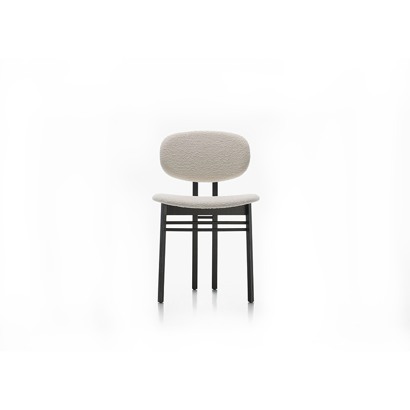 With its curves and contrasting linearity, the Med chair by Lodovico Acerbis and Giotto Stoppino is defined by distinctive details, such as the unique leg profile – reminiscent of the iconic Flatiron Building in Manhattan, New York – and the cross-pieces connecting the legs, whose repetition creates a striking graphic rhythm. Designed to pair effortlessly with any type of table, Med is available in dark-stained walnut, black-stained ash or bleached ash, or in solid wood with a matt lacquer finish, offered in a palette that includes white. The generous padding enhances its comfort and emphasises its sophisticated, assertive presence.