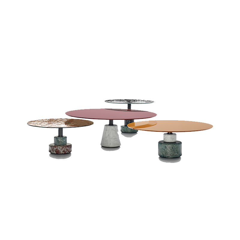 With a daring approach to materials, the Menhir low tables becomes a composition of colours and textures that eloquently illustrates the sculptural simplicity of Lodovico Acerbis and Giotto Stoppino’s inventions of new forms.