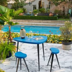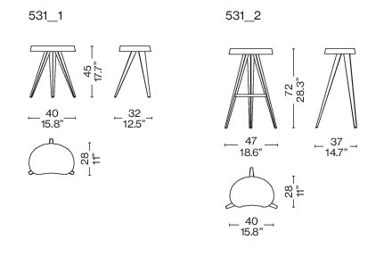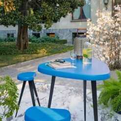 Charlotte Perriand began designing the “en forme libre” series of tables in 1938 and devised Mexique in 1952 for the students’ rooms in the Maison du Mexique at the Cité Universitaire Internationale in Paris. The iconic triangular shape with bevelled edges – designed to make the best use of the space – is the unmistakable feature of the seat of the Mexique Outdoor design stool, as well; it can be paired with the high bar table from the same collection.