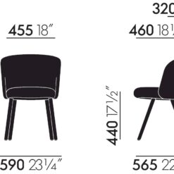 Mikado is available as an armchair or as a side chair. The sides of the rounded backrest do not extend as far forward on the Mikado Side Chair as on the armchair version.