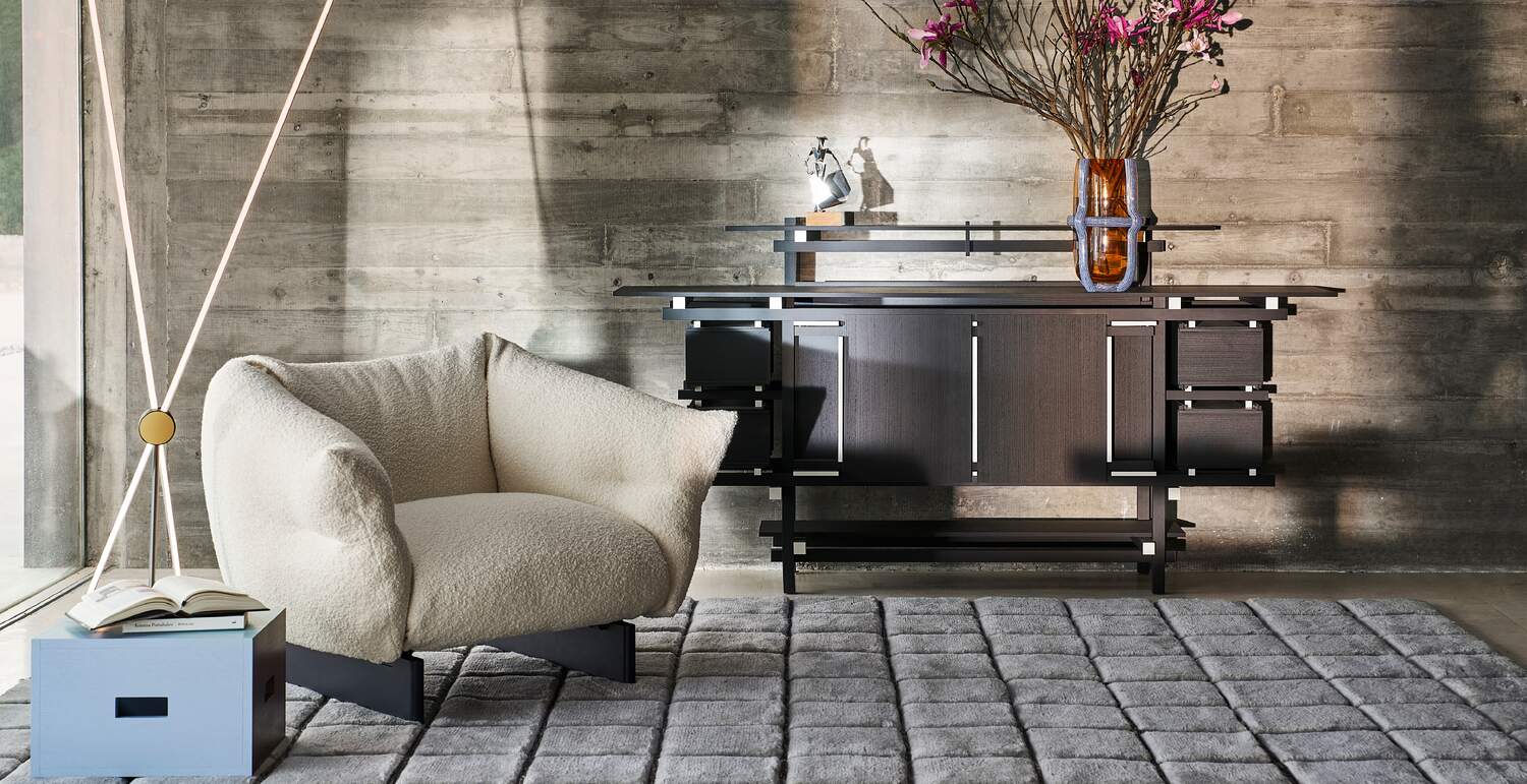 The sheltering refuge that honours comfort through awareness. In this sophisticated creation by Patricia Urquiola, the wooden structure lifts the upholstered parts off the floor, lending the entire sofa the lightness of a cloud.
