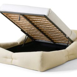 The bed structure, available in eight sizes, can be paired with all the bed bases available in the catalogue and can be ordered in the version with storage. Mon-Nid can also be configured with a backrest cushion with additional bolster.
