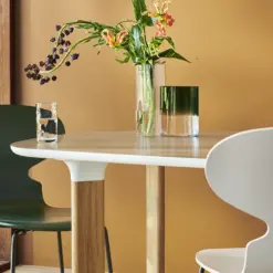 Inspired by the iconic crescent moon and eye symbols and handmade with the greatest of care. Each vase differs slightly in height, thickness, and hue. Place the vases together or separately depending on preference.