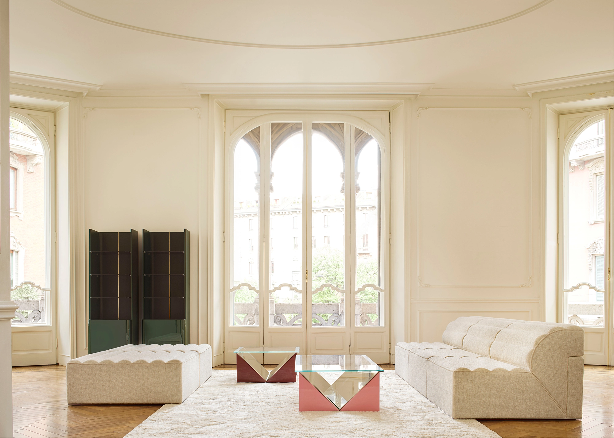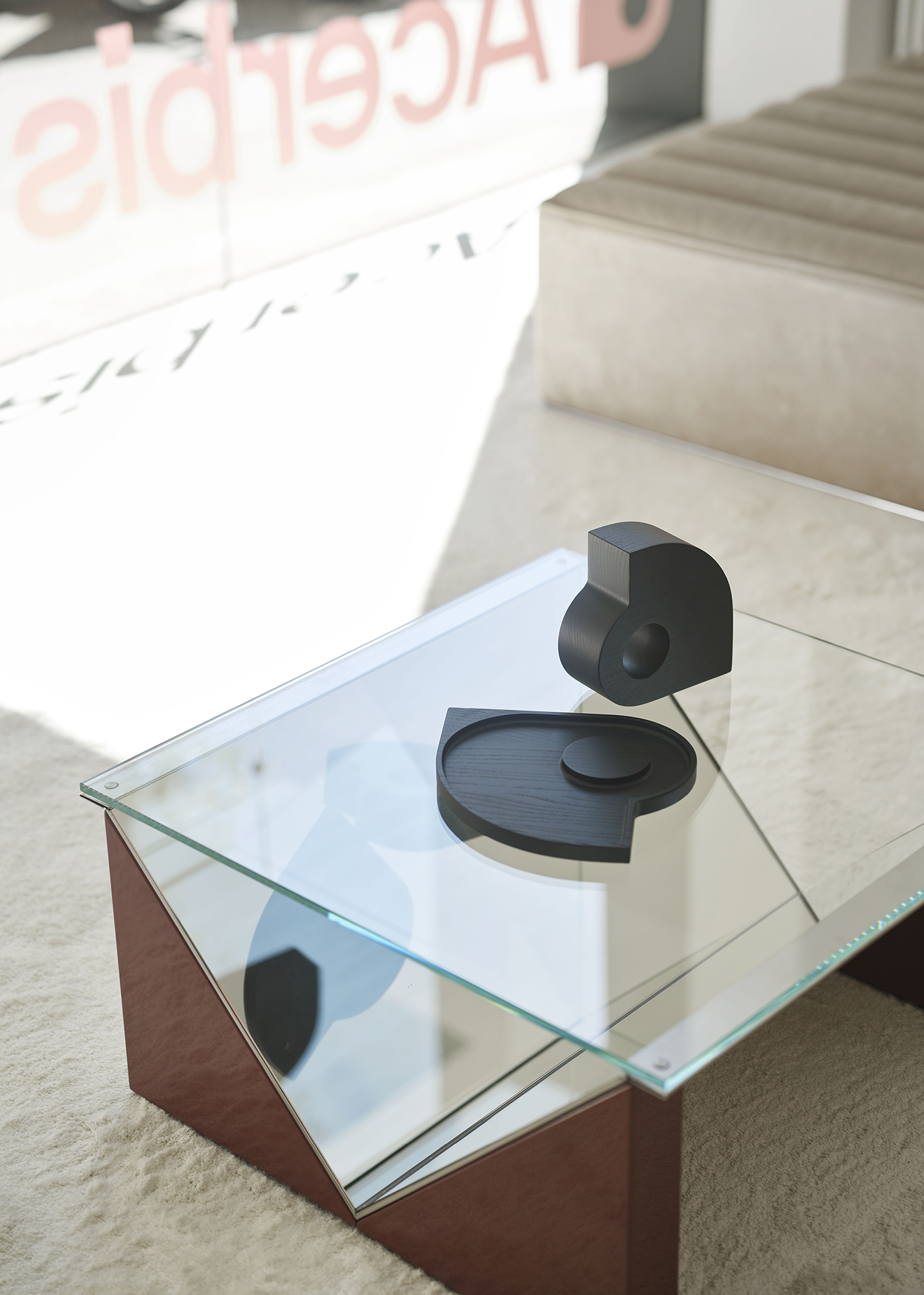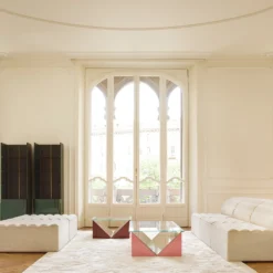 Salocchi launched the family of tables, coffee tables and display stands Napoleone during the 15th Milan Triennale in 1973.