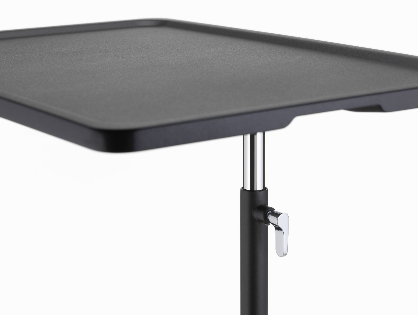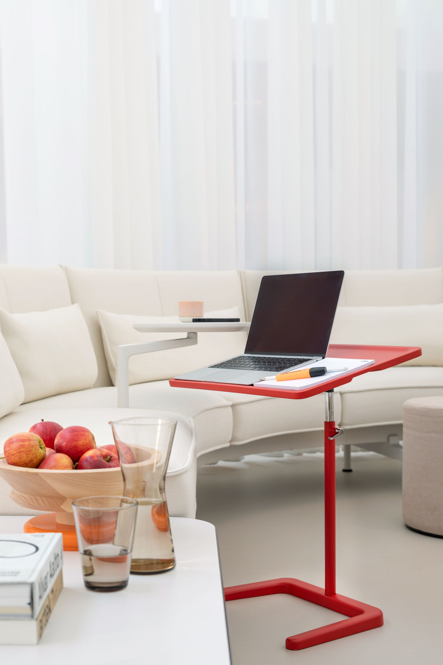Sofa lounges and comfortable seating areas are now readily provided – but how do you work in a lounge chair? By using NesTable with its fully adjustable platform height and inclination. Thanks to the shape of its base, this versatile table can be drawn up closely to most types of seating.