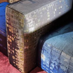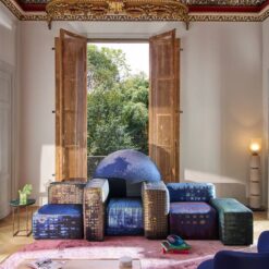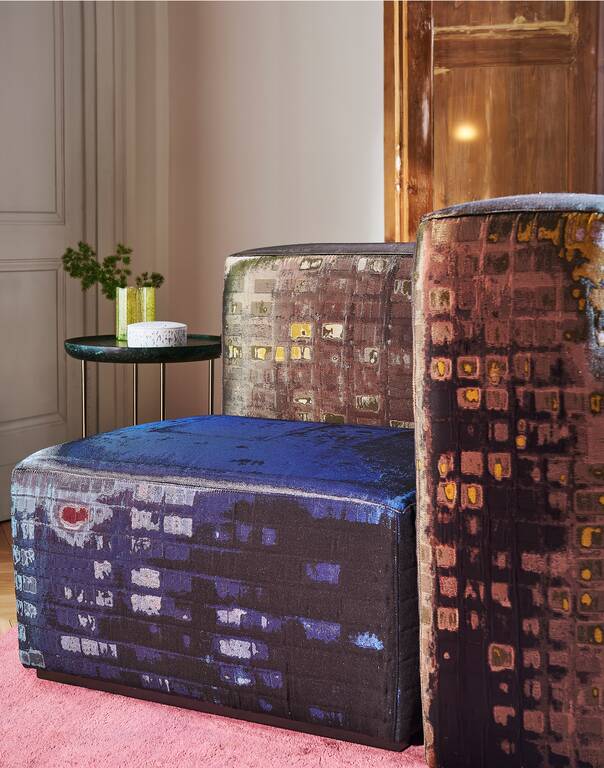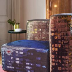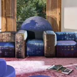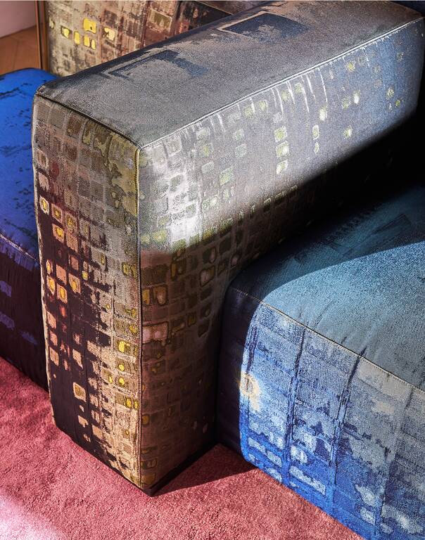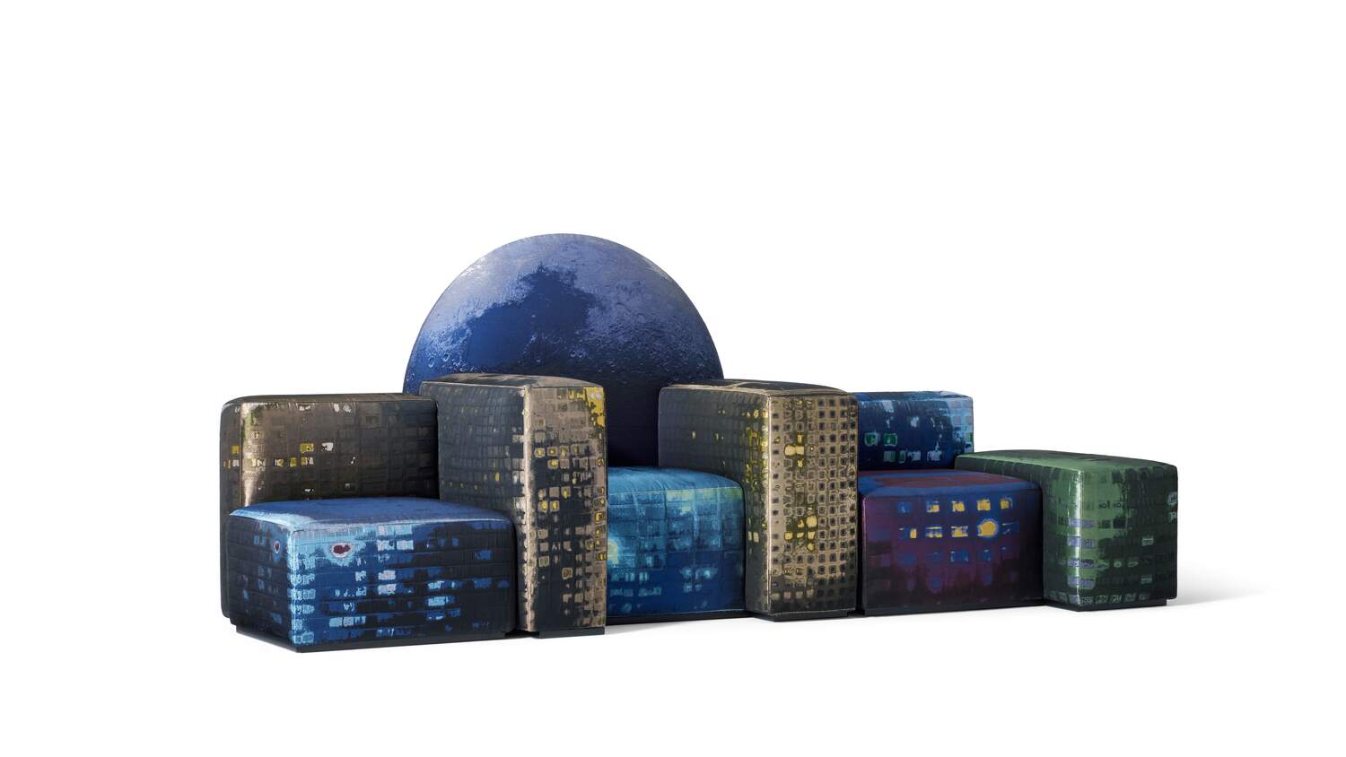 The New York skyline in a sofa, from the genius of Gaetano Pesce. Design becomes narrative in this visionary work that returns in a special series of 50 pieces. This imaginative creation is a new chapter in a story begun in the 1980s with Tramonto a New York, the work with which Pesce surprised his adoptive city at sunset to then return the image through a series of spacious upholstered pieces arranged as if to reproduce its skyline. The three-seat sofa combines eloquent energy and meticulous structural functionality. The system comprises nine skyscraper-modules that serve as seats and armrests, joined to one another by fasteners. The backrest portrays a giant full moon – through this work, Pesce reveals to the world its mysterious side, not visible from Earth. Cassina reinterprets Notturno a New York in a version with a conscious soul. The padding of the new edition is made of recycled PET fibre, introduced as standard in the upholstered pieces, and reducing to a minimum the use of polyurethane, crafted with a percentage of polyols derived from biological sources. The upholstery is in an exclusive fabric with a design made specifically for this product.