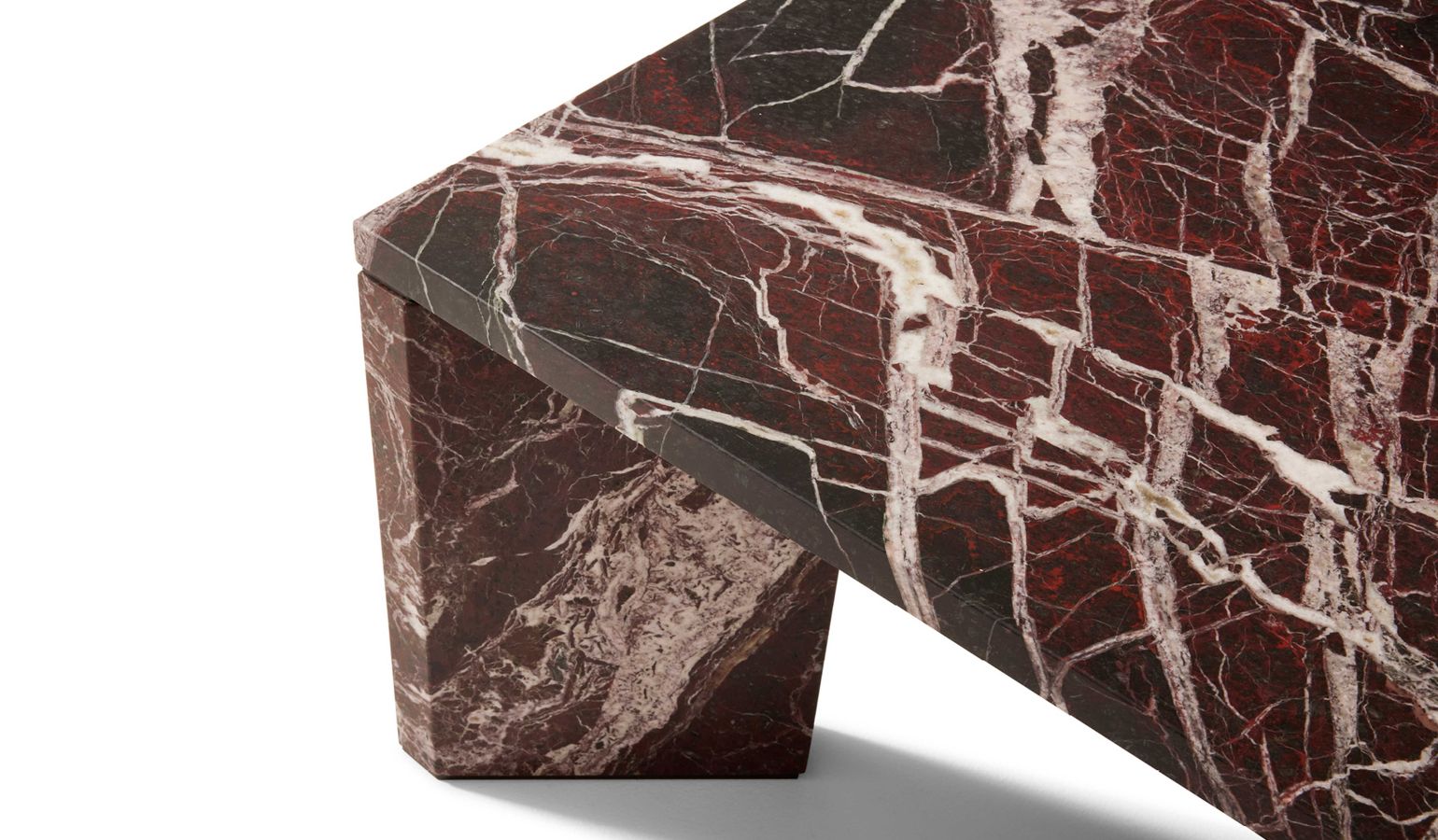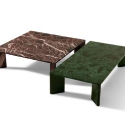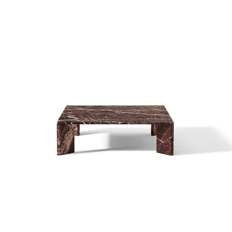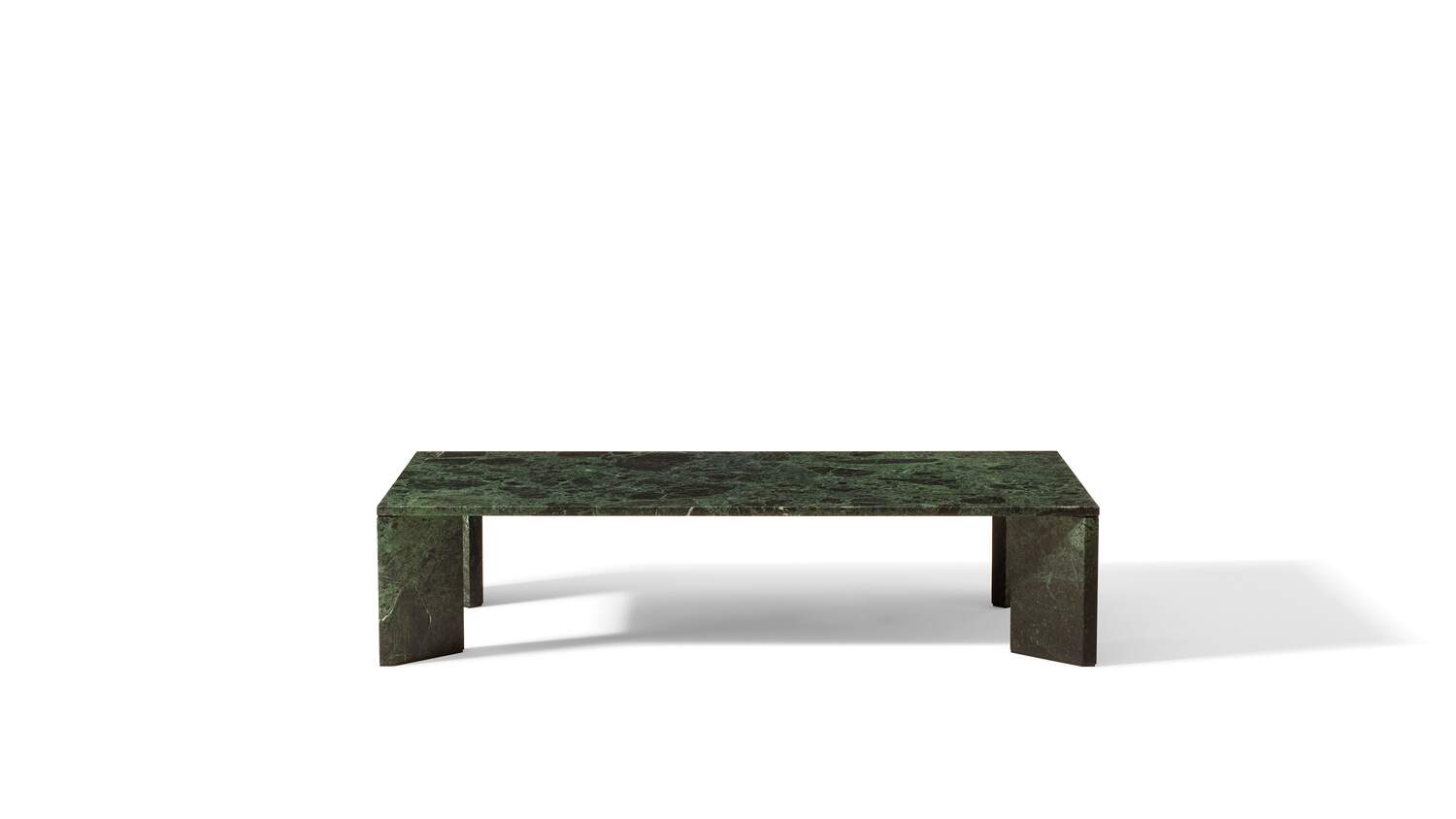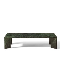 The marble table by Michael Anastassiades in a low version, in two different shapes, designed for living rooms and lounge spaces. The clean, elegant lines that characterize the collection distinguish this table that retains the sophisticated, sculptural appearance of the design by the London-based Cyprian author. Compared to the high version, Ordinal Low has a structural underpanel that provides even more stable support in an almost invisible manner. Available in rectangular or square version, the table comes in five types of marble: Calacatta, Carrara, Portoro Silver, Rosso Levanto and Verde Alpi. Placing several low tables close to one another plays up the vitality of the tops, contours and colours, intensifying the sense of conviviality.