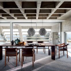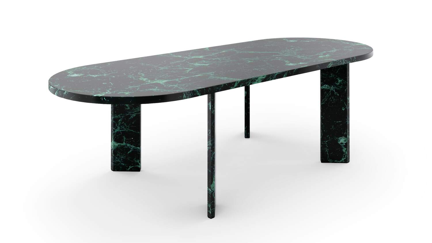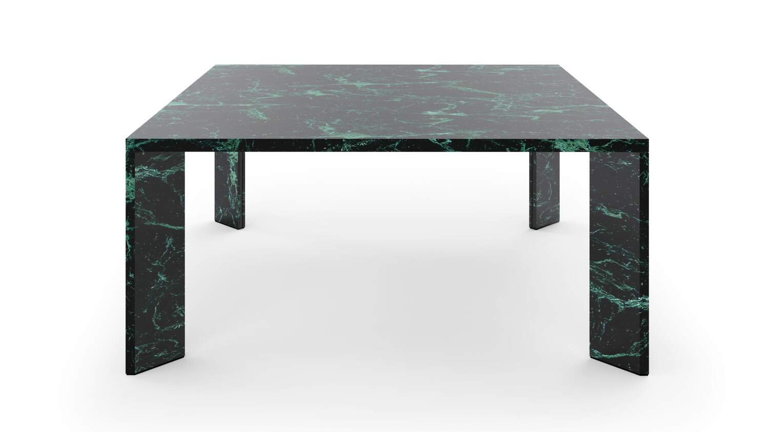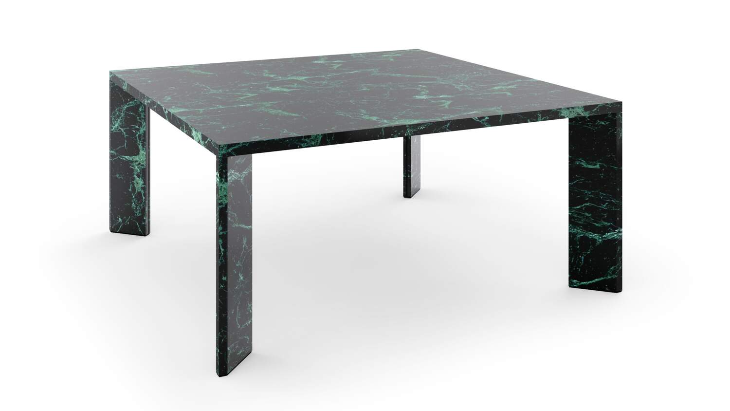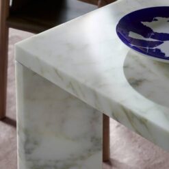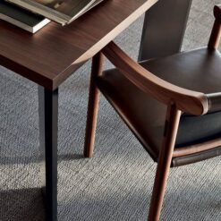 A collection of contemporary, sculptural dining tables, where the designer’s expertise in metalwork comes together with Cassina’s artisan skills and excellence in joinery. Its clean, minimalist design pairs a super-slim wood top with slender legs in wood or anodized or painted aluminum, placed on the diagonal at the ends of the table to allow more space for the diners. An extraordinary challenge for the company’s Research Center that rose to the occasion with an innovative solution that combines stability, strength and pared-down thicknesses. The line includes two square versions, one oval with lacquer or veneer top and two rectangular versions, one mono-finish in all-marble, or with the top in marble and the legs in aluminum, which adds to the sculptural beauty of the collection. The models with veneer top have an opulent solid wood perimeter.
