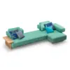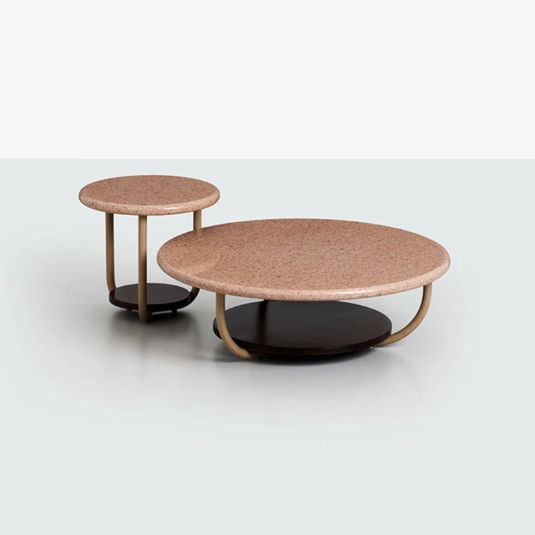 Parterre is a series of patio outdoor furniture that blends contemporary lines with refined traditional accents. Comprising a sofa, armchair, side table and coffee tables, each piece features a tubular metal frame with clean, fluid contours. The backrests are crafted in woven natural straw, evoking the charm of 19th-century wickerwork while adding texture and warmth. Cushions on the seating elements are upholstered in durable velvet, specially designed for outdoor use, while the tables are finished with elegant pink granite tops that lend a sculptural, tactile quality to the ensemble.