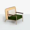 Parterre is a series of patio outdoor furniture that blends contemporary lines with refined traditional accents. Comprising a sofa, armchair, side table and coffee tables, each piece features a tubular metal frame with clean, fluid contours. The backrests are crafted in woven natural straw, evoking the charm of 19th-century wickerwork while adding texture and warmth. Cushions on the seating elements are upholstered in durable velvet, specially designed for outdoor use, while the tables are finished with elegant pink granite tops that lend a sculptural, tactile quality to the ensemble.