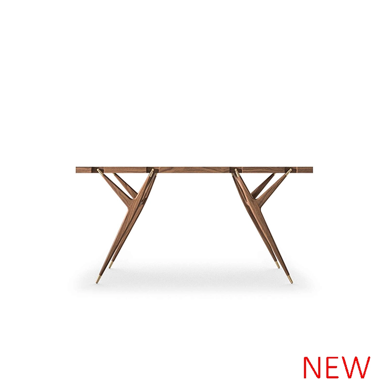 The idea for this console table, designed by Ico Parisi in 1947 for a private client, stemmed from a few lines drawn on a sheet of paper: a horizontal line and two oblique lines to define a structure with almost perfect proportions and an organic appearance. Cassina has respected and enhanced the heart of this project by combining technology with craftsmanship, typical of the company’s carpentry workshop; the result is a refined solid wood console table embellished with metal details that adapts to all rooms in the home. Its rectangular plane has four straight notched recesses on the two longest sides, near the extremities, within which, like real joints, the tips of the characteristic divergent “Y” shape upper arms of the legs, available in ash or Canaletto walnut, are screwed and bound two by two to a shaped crossbar. Balance and strength are guaranteed by two oblique turned solid wood elements, joined diagonally to the crossbar and embedded in the structure below.