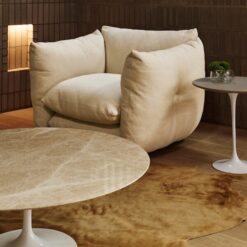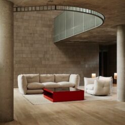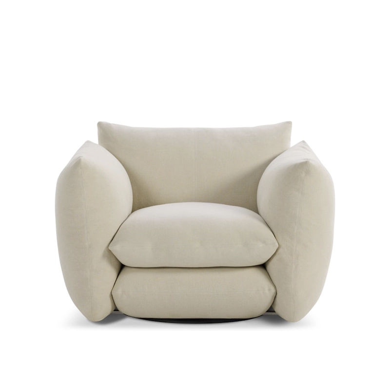 The Perron Pillo Lounge Chair challenges preconceptions. What appears to be a freestanding stack of oversized pillows is, in fact, engineered to offer lounge-like support. Creating a chair that’s evocative and inviting was integral to multidisciplinary designer Willo Perron’s approach. “Everything I do has a bit of humor in it,” he says. “I wanted the chair to evoke surprise and emotion.”
