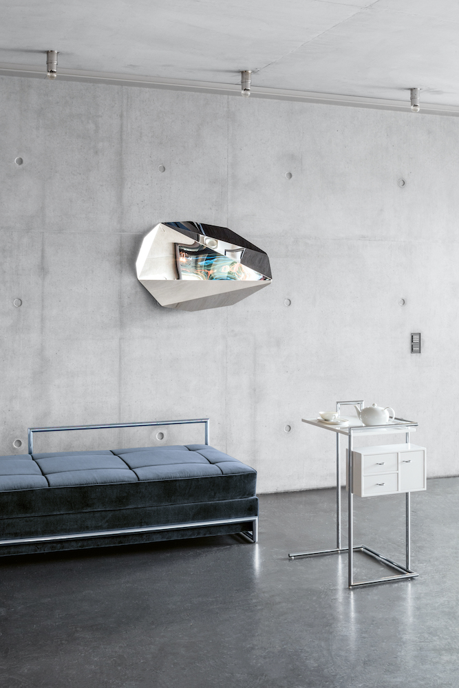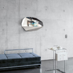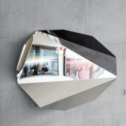 With her Piega Mirror, French designer Victoria Wilmotte brings an object of unusual crystalline elegance and astonishing geometry to living environments. The mirror-polished stainless steel makes the surface of the object look like transparent mirrored surfaces. The bends and folds that gave Piega its name create a fascinating play with the refraction of light and colour reflections in any room. With its three-dimensional structure, the mirror thus becomes a vivid object.