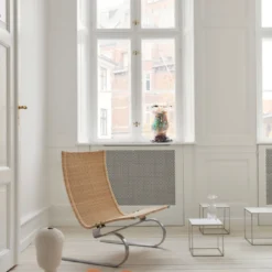 The PK20™ is a laidback and elegant easy chair, designed by Poul Kjærholm. Handcrafted in both wicker and leather, the chair features soft leather upholstery and a reclining headrest, resting on a flexible matt chromed spring steel frame. Over the years, the PK20 has become a Poul Kjærholm classic – as well as a permanent fixture at the Victoria and Albert Museum in London.