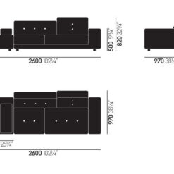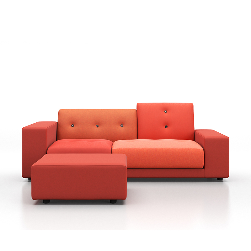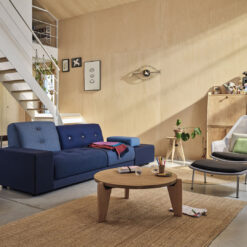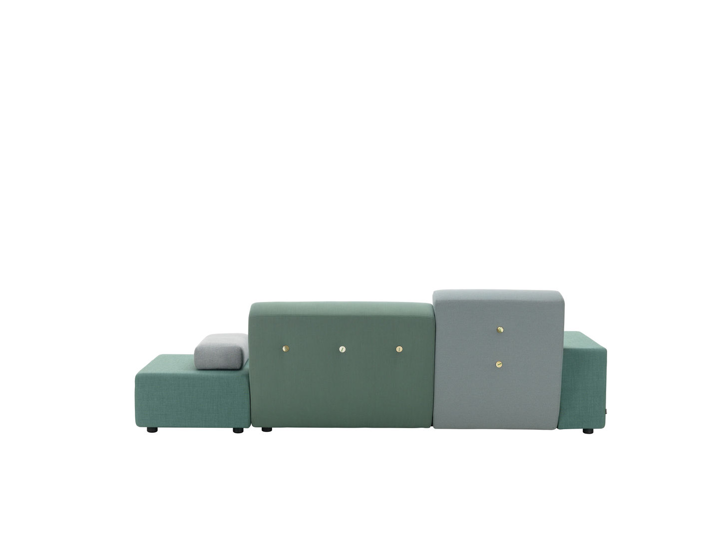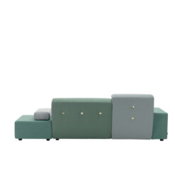 Both models can be optionally configured with the higher armrest on the left or right side, making it adaptable to different spatial situations. The platform for the Polder Sofa is available separately and can also be used as an ottoman. All covers are removable.