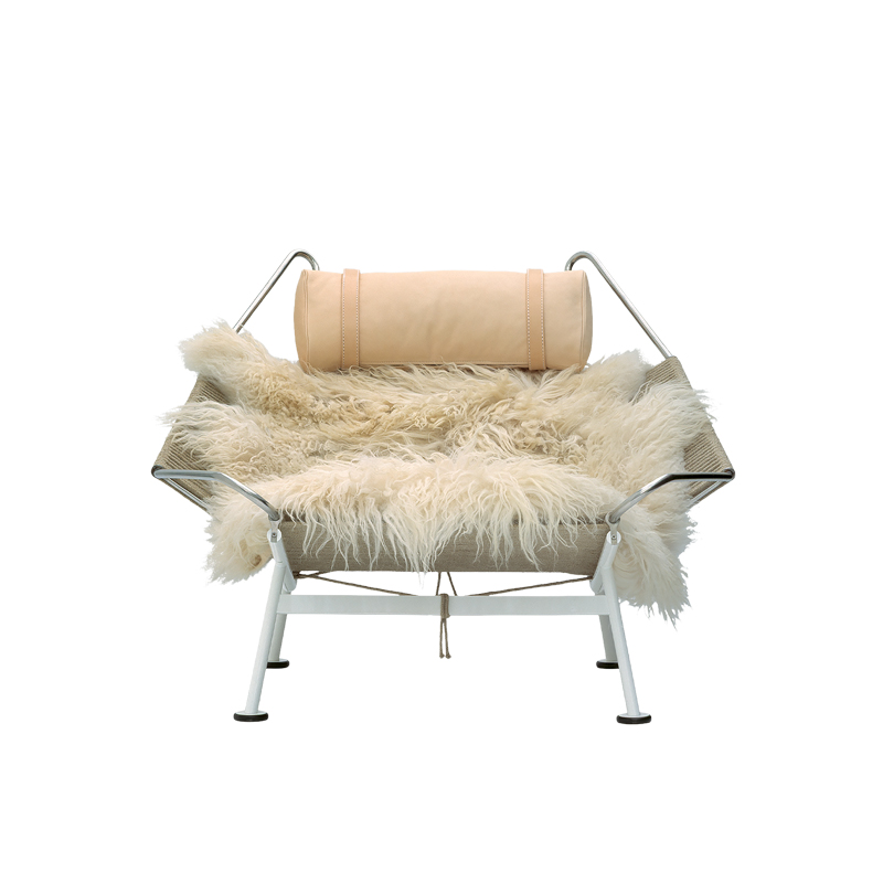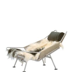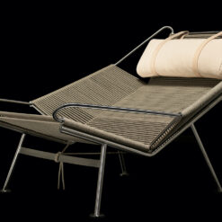 Despite Wegner’s preferences for wood, he shows his innovative skill and appetite with the Flag Halyard Chair. With it, he pays a tribute to the early modernist designers such as Le Corbusier, Mies van der Rohe and Marcel Breuer. Wegner proves his mastery with stainless steel with the same elegancy as that with which he mastered wood.