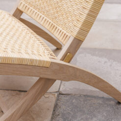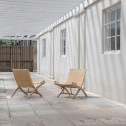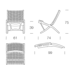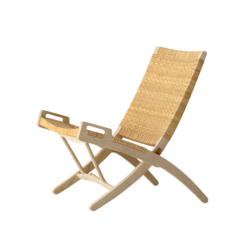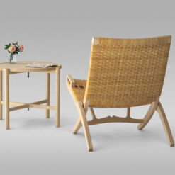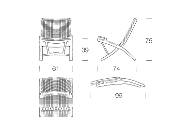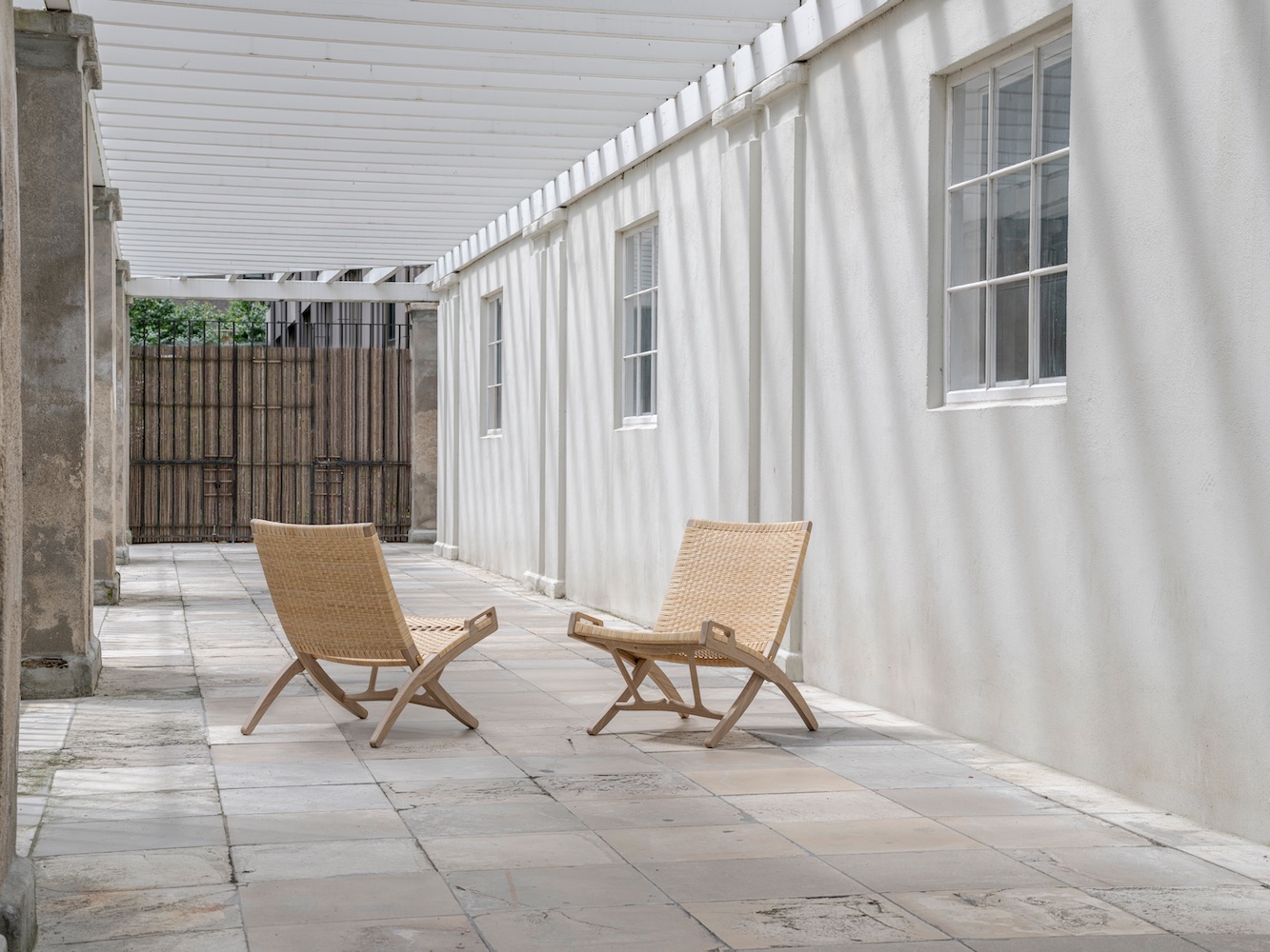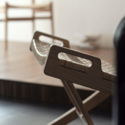 The Folding Chair was presented alongside the Round Chair at the legendary 1949 Cabinetmakers’ Guild’s Autumn Exhibition that marked the breakthrough for Wegner. The basic lines pays homage to the Barcelona Chair by the renowned Bauhaus architect Mies van der Rohe while Wegner gave it a folding mechanism that would add stability to the construction and made it out of pure natural materials.