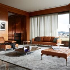 A sophisticated and attractive collection of sofas, dignified and formal in its design, yet highly versatile and suited to any setting. Both stylish and unusual, classic yet assertive, the Privé collection consists of a number of elements, all upholstered in capitonné leather. Cassina has developed a state- of-the-art technique for attaching the leather buttons to achieve the tufted effect, for which it holds an international patent, and which guarantees the quality and durability of the upholstery. Designed to work well in both formal and informal settings, the components of the collection include the island sofa, whose generous proportions — along with the two back- and arm-rests — make it reminiscent of a bed.