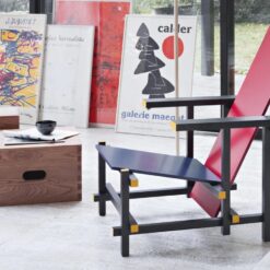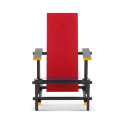 Designed by Rietveld in 1918, Red & Blue is a design armchair in the guise of a Rationalist geometric sculpture. A genuine masterpiece of design.