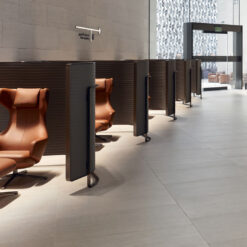 - Backrest: moulded polyurethane foam with webbed plastic frame and integrated synchronised mechanism with locking device.