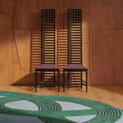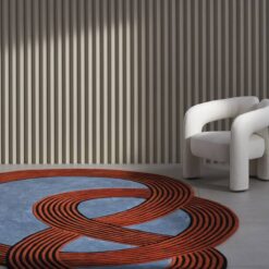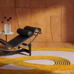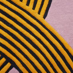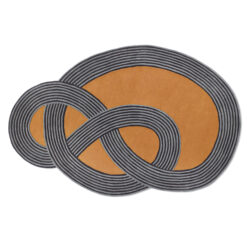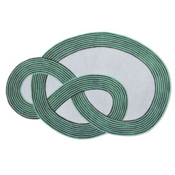 With Rigadino, Patricia Urquiola designs an article of nonconformist elegance inspired by historic Venetian handiwork. Made of wool, the rug reinterprets, in a vivid textile pattern, the traditional striped motif typical of Murano glass. A thick border decorated with the characteristic black lines of the “rigadin” defines the uneven perimeter of the rug, producing an interplay of hypnotic shapes that separate and interweave, again and again. A vortex of colour creates a sense of continuity with the Sestiere vases and the No Vanitas mirror, revisiting the same four colourways – aquamarine with carrot red surround, amethyst with lemon yellow, topaz with periwinkle and pale blue with petroleum.