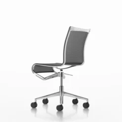 Structure made of extruded aluminium profile and die-cast aluminium elements. Seat and back in PVC covered polyester mesh, in eco-leather Serge Ferrari®, in fabric Camira®, Reviva® or Kvadrat® or in Pelle Frau® leather.