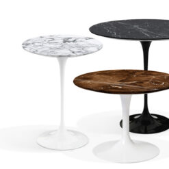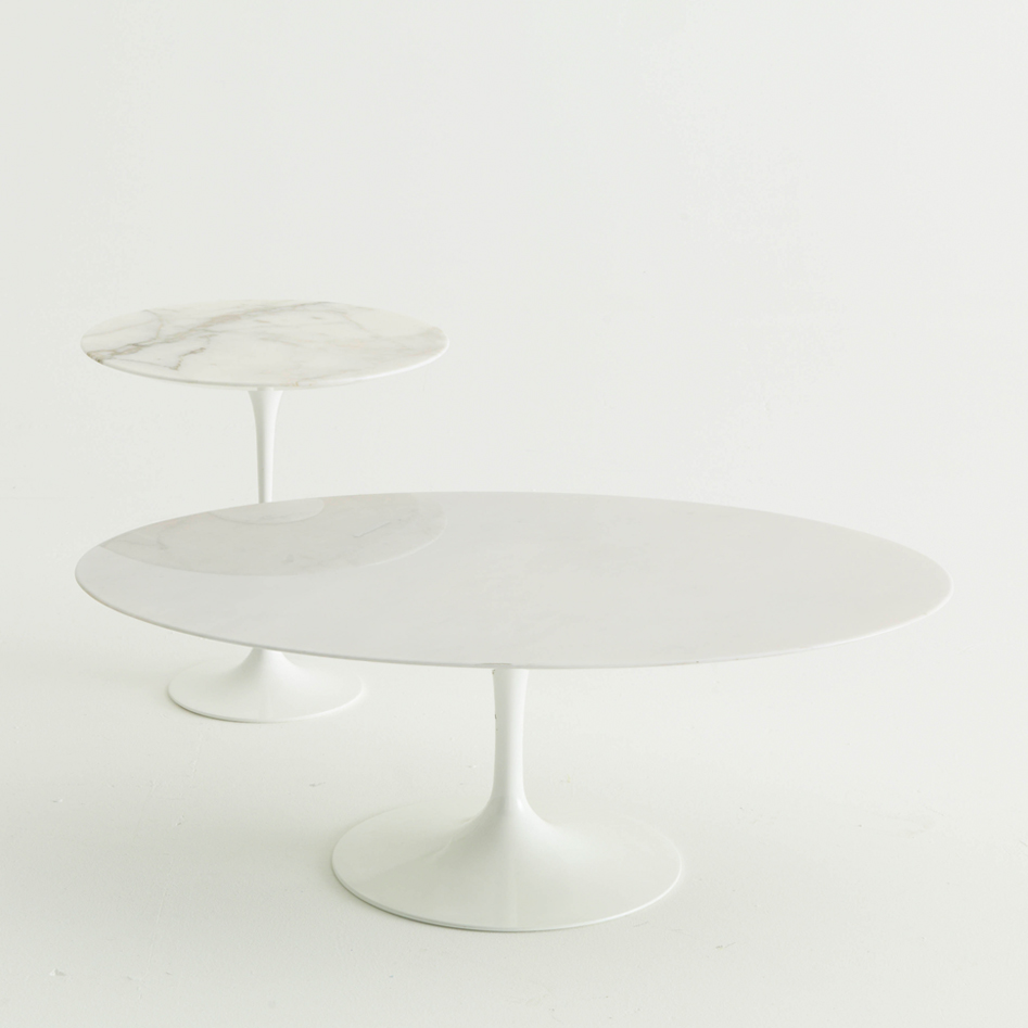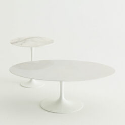 Eero Saarinen’s pedestal table collection includes coffee, side and dining tables. The Knoll logo is located on the uderside of the base. A nameplate with the KnollStudio logo and the signature of Eero Saarinen is also located on the underside of the top or on the top support plate.