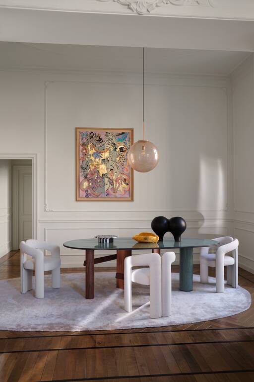 Sengu Table is an almost monumental piece of furniture that celebrates conviviality through poetic dialogue, placing an accent on the union of different materials that together express great visual tactility