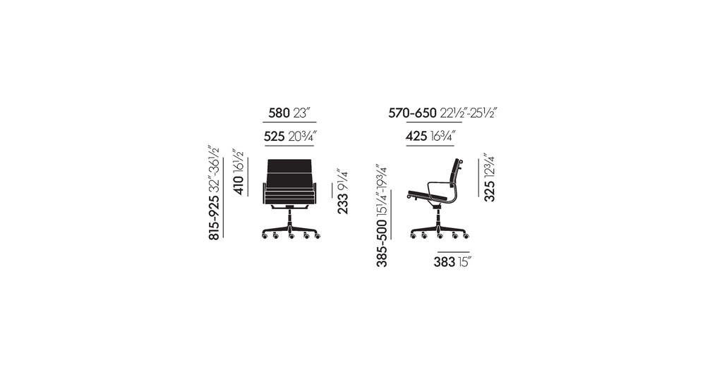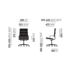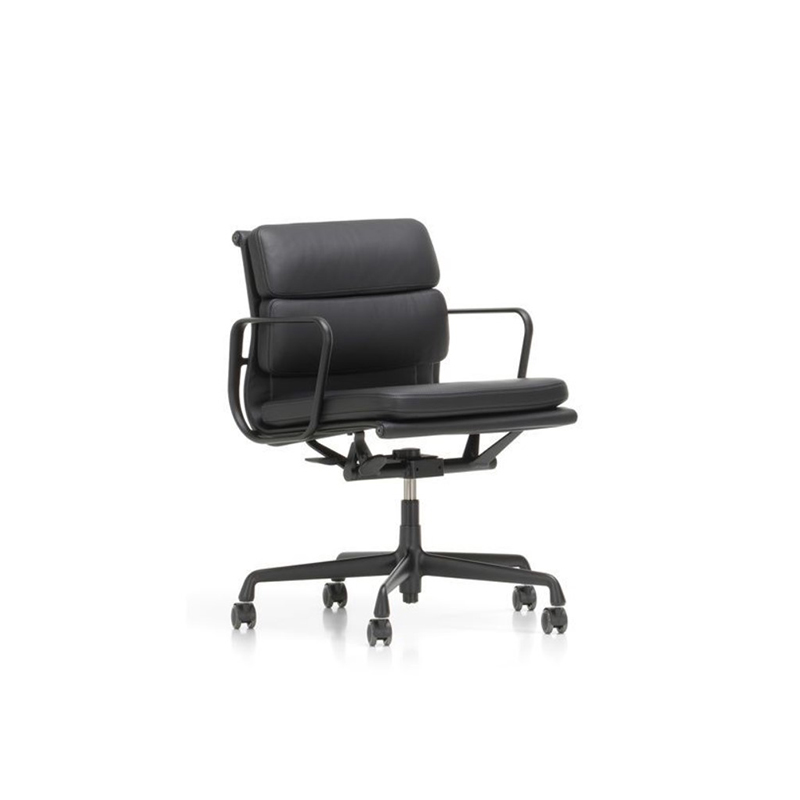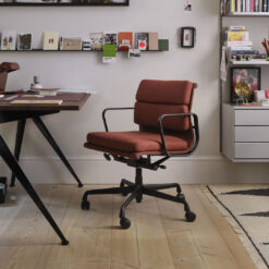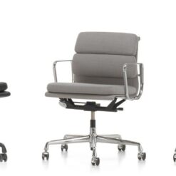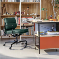 The models EA 217 and EA 219 are the office swivel chairs in the Soft Pad Group by Charles and Ray Eames. Their dignified aura makes them especially suited for management areas. The extraordinary comfort of the chairs results from the combined effect of their tilt mechanism, which can be adjusted to the user’s weight, and the soft fabric- or leather-covered upholstery. The higher backrest of EA 219 distinguishes it from the Soft Pad Chair EA 217.