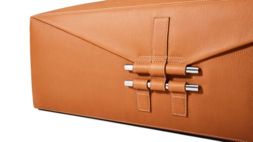 Somewhere EL-S is a tribute by Philippe Starck to his 30-year collaboration with Cassina. The seating collection exhibits the finely tailored details typical of high fashion, transferred to the design of three ottomans – two square and one rectangular, that can also be used as daybeds with or without backrest – and an armchair, available in the same types. In its uniqueness, this creation reflects multiple influences – at times, a handbag or a suitcase and other times, a gift-wrapped package. An artisan-crafted closure, inspired by the world of saddlery, embellished with metal elements, further enhances the models. Common thread throughout, on the armchair this detail is found on the front while, on the ottomans, it is placed on two sides. The upholstery is available in two materials: a type of leather with a very thick grain in three colours, or in solid natural or black colour fabric, or fabric with an ethnic motif custom-designed by Philippe Starck. Padding for the seat and armrests is made of circular materials, like variable density polyurethane foam with a percentage of polyols derived from biological sources, encased in blown recycled PET fibre. Since there are no glued parts, the Somewhere EL-S Collection can be completely disassembled to facilitate recovery of the materials at the end of the product’s life cycle.