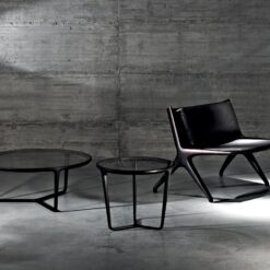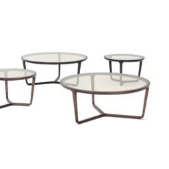 Stella takes its name from the simple yet original design of the base. The three legs that meet, in solid American walnut, resemble the points of a star. The 6 mm glass top dialogues with the geometry, assuming different forms: circular, triangular, square or rectangular. Designed by Noé Duchaufour-Lawrance in 2008, Stella comes in lots of different sizes, all of which with a precise identity to create different effects. It can be used as a single coffee table or as part of a composition, using its different shapes and finishes. Stella is the elegance of handmade construction details, a design that transcends fashion, the Ceccotti Collezioni take on luxury.