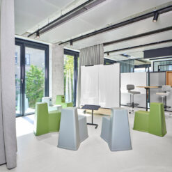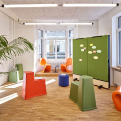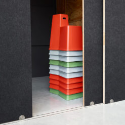 With its step-like platforms, Stool-Tool unites chair and table in a single object. It permits numerous sitting positions and directional orientations, and the desk-like backrest can serve as a small worktop or storage surface.