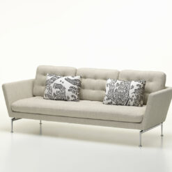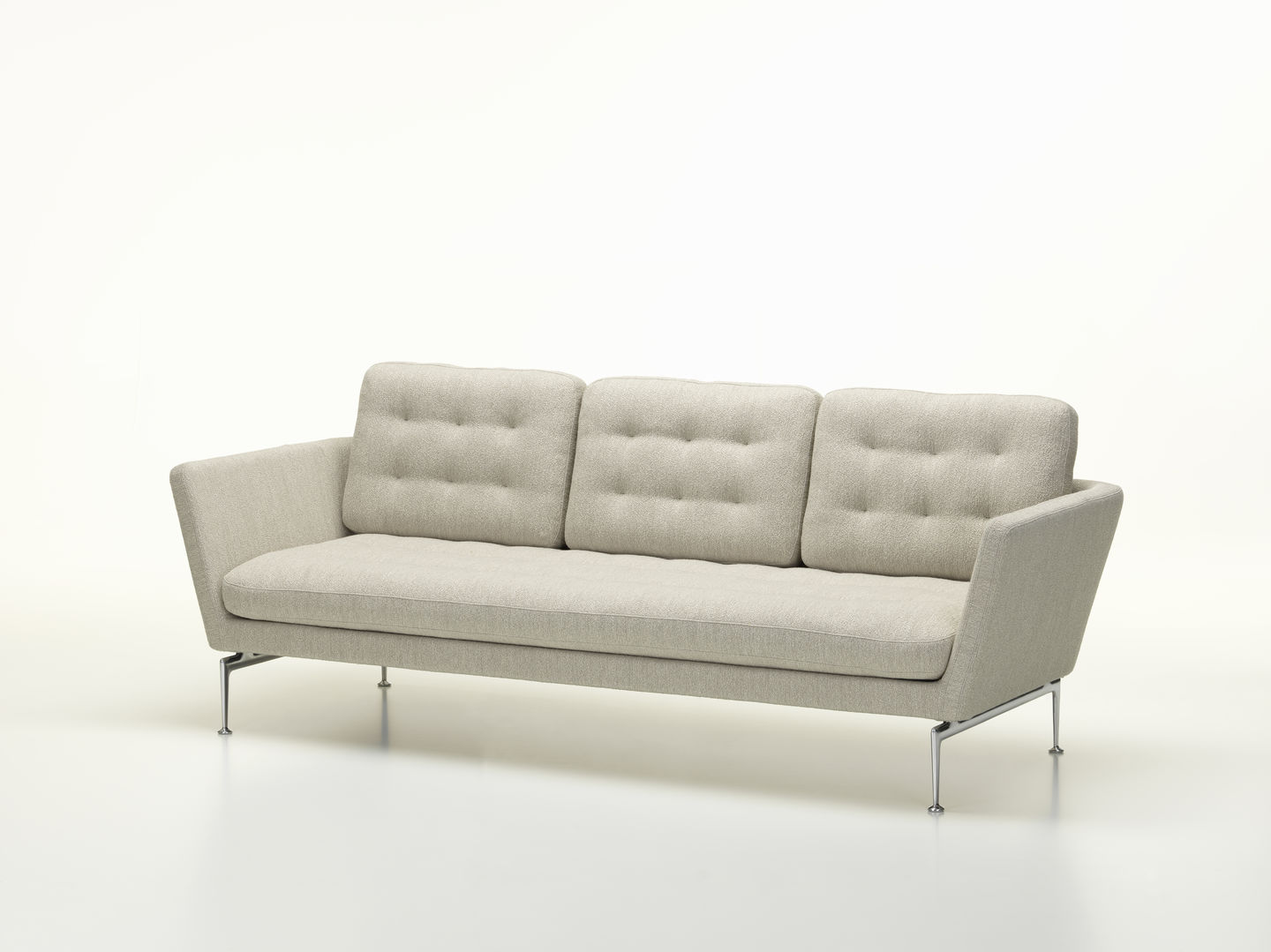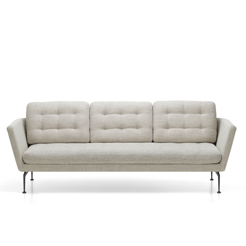 The Suita sofa system combines light and slender volumes with an industrial and technological aesthetic. The geometrically precise body and cushions seem to float above the sleek, bridge-like aluminium legs, in what can be seen as a tribute to mid-century American design. The Suita sofa family encompasses a wide range of components. These can be used as independent elements or freely