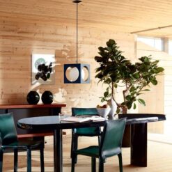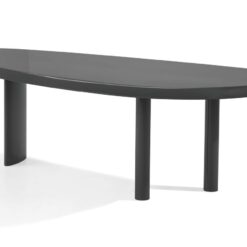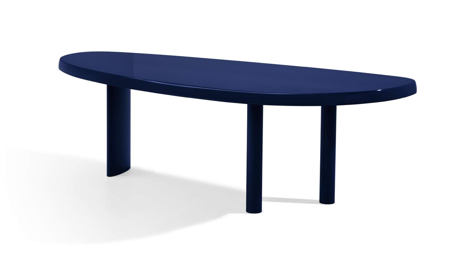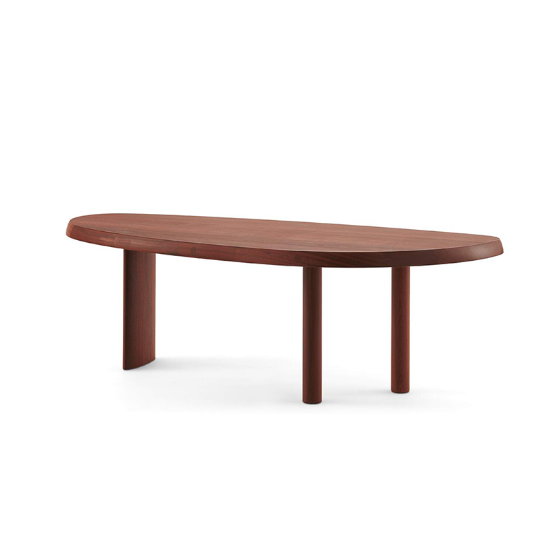 Charlotte Perriand started work on the tables en forme libre in 1938. Originally intended for her own atelier in the Montparnasse area of central Paris, they went into production courtesy of Galerie Steph Simon at the end of the 1950s. All rounded edges, and asymmetrical lines, these tables are perfectly suited to accommodating up to eight guests in small spaces. The table has three legs: one is oval with a wider footprint, the other two are smaller and are cylinder-shaped. In 2011, Cassina re-issued this piece, reducing the width of the legs to offer more space and allow guests to sit closer to each other on convivial occasions. Supplied in mahogany solid wood, the table also comes with a gloss or matte varnished finish, in the Cassina Moodboard colours. The table-top is composed of wooden staves that slot into each other, the joins being seen at the ends, testifying to the Cassina company’s exceptional carpentry skills; any variations in the wood are part of the very nature of the raw material and serve to highlight its inherent beauty.