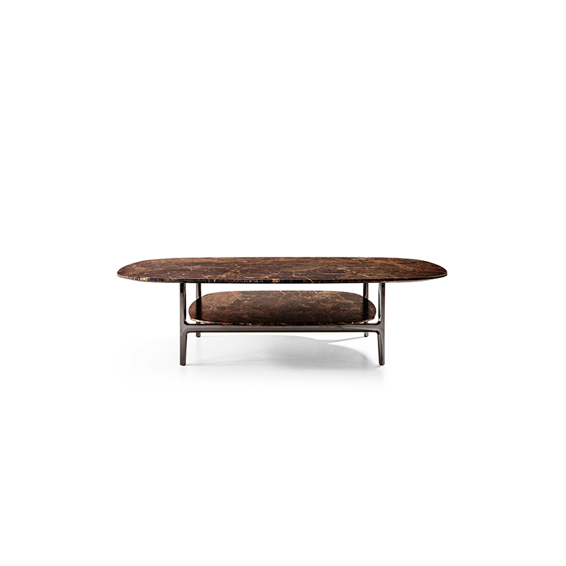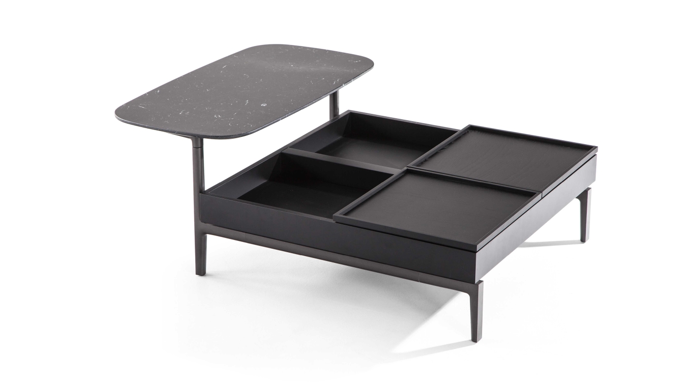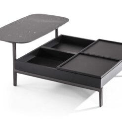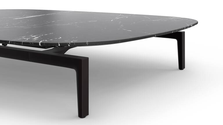 This versatile coffee table designed by Philippe Starck with luxury finishes is perfect for use in lounge areas, corporate offices and upscale hotels. The low table is available in several types of marble, including white Carrara, nero Marquina and grigio Carnico, Calacatta and Sahara, while the aluminum base comes in painted matte black or white finish.