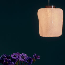 The Wax, Stone, Light Collection by Linde Freya Tangelder – based on five totem-like columns, each of different dimensions and composed of sculptural blocks made of blown Murano glass – serves as inspiration for various options to illuminate a broader selection of spaces. The cube-shaped modules that comprise the five pieces in the first collection were reinterpreted to bring to life new configurations: a pendant lamp and two appliques, one rounded and one with more linear shapes, carved from cut cubes. Made of Murano glass blown inside cast-iron moulds by skilled artisans, the blocks also retain the unevenness of surfaces hand-worked with wax that makes each piece unique.
