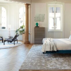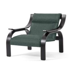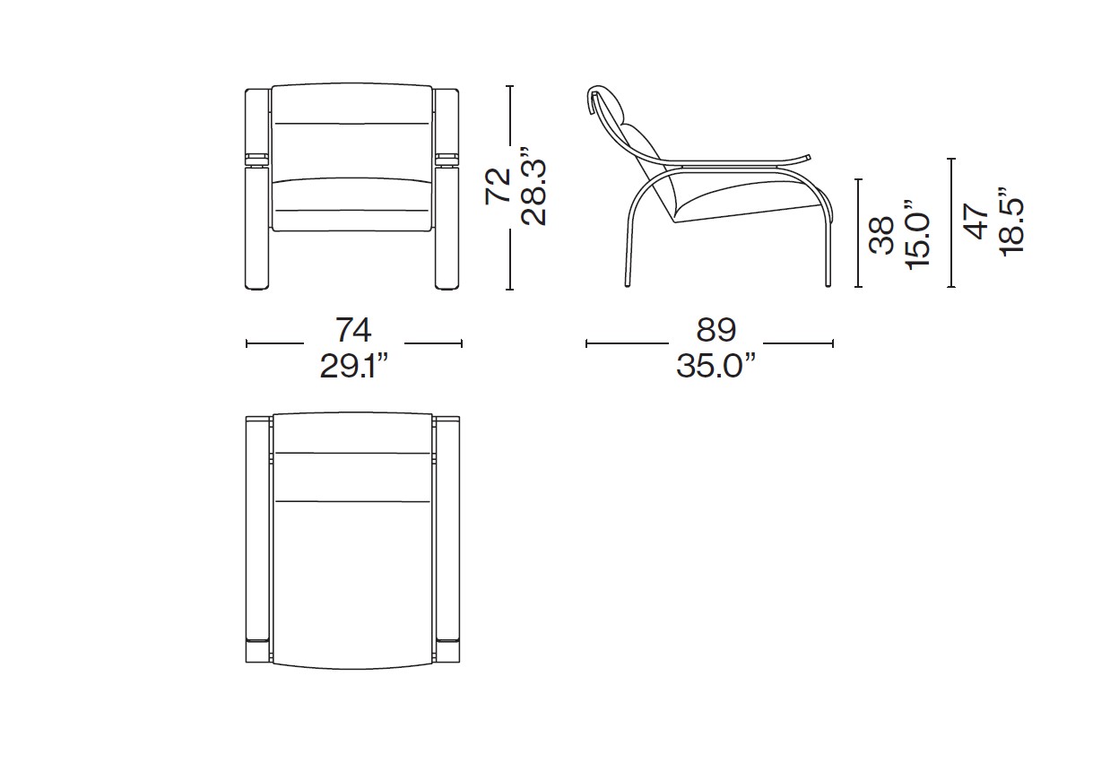 An armchair with a striking, rigorous design, the outcome of research by Marco Zanuso on how to anchor a seat on a wood frame. Zanuso started work on this chair with his entry in an international design competition organised by the Museum of Modern Art in New York in 1949. He returned to it in 1964, harnessing Arflex’s advanced technology. The wood frame is based on the geometry of the circle, which provides the chair’s elegant formal aesthetic. Available in an iconic edition with a clear- varnished walnut frame, with the back panel in beige saddle leather, and the cushions in tobacco coloured leather.
