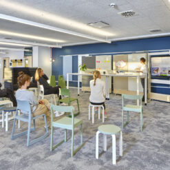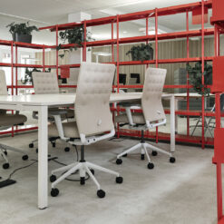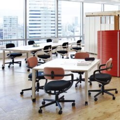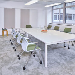 Thanks to their understated design, the tables can also be used together with other furniture types and complement a wide variety of office environments and interior concepts. The WorKit meeting tables are available in three sizes for 8 to 12 people, in sitting or standing heights, on castors or glides, with or without electrification and with melamine or veneer table tops.